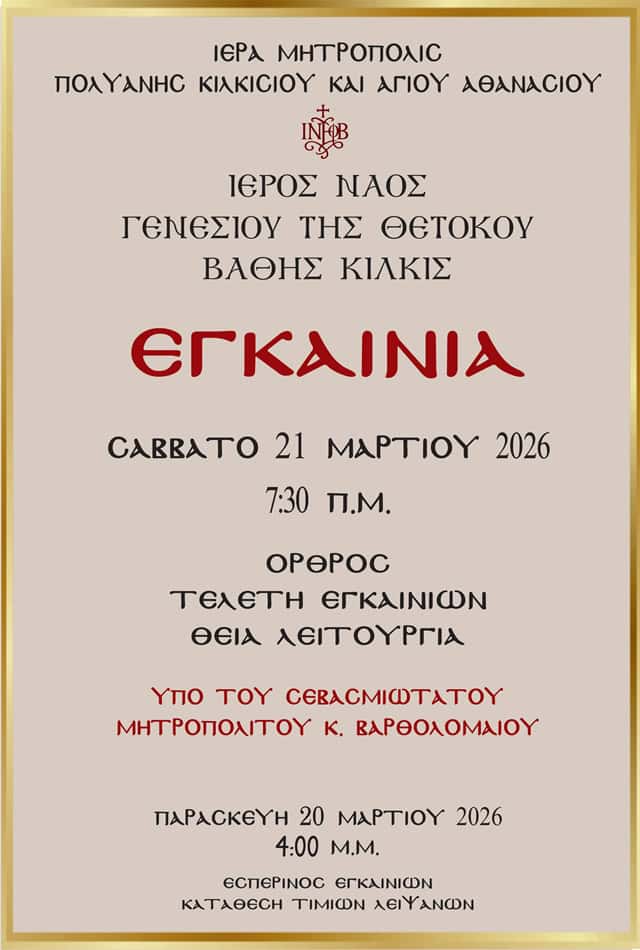 Εγκαίνια Ιερού Ναού Γενεσίου της Θεοτόκου Βάθης Κιλκίς- ΑΠΕΥΘΕΙΑΣ ΜΕΤΑΔΟΣΗ το Σάββατο 21 Μαρτίου στις 7:30 π.μ.